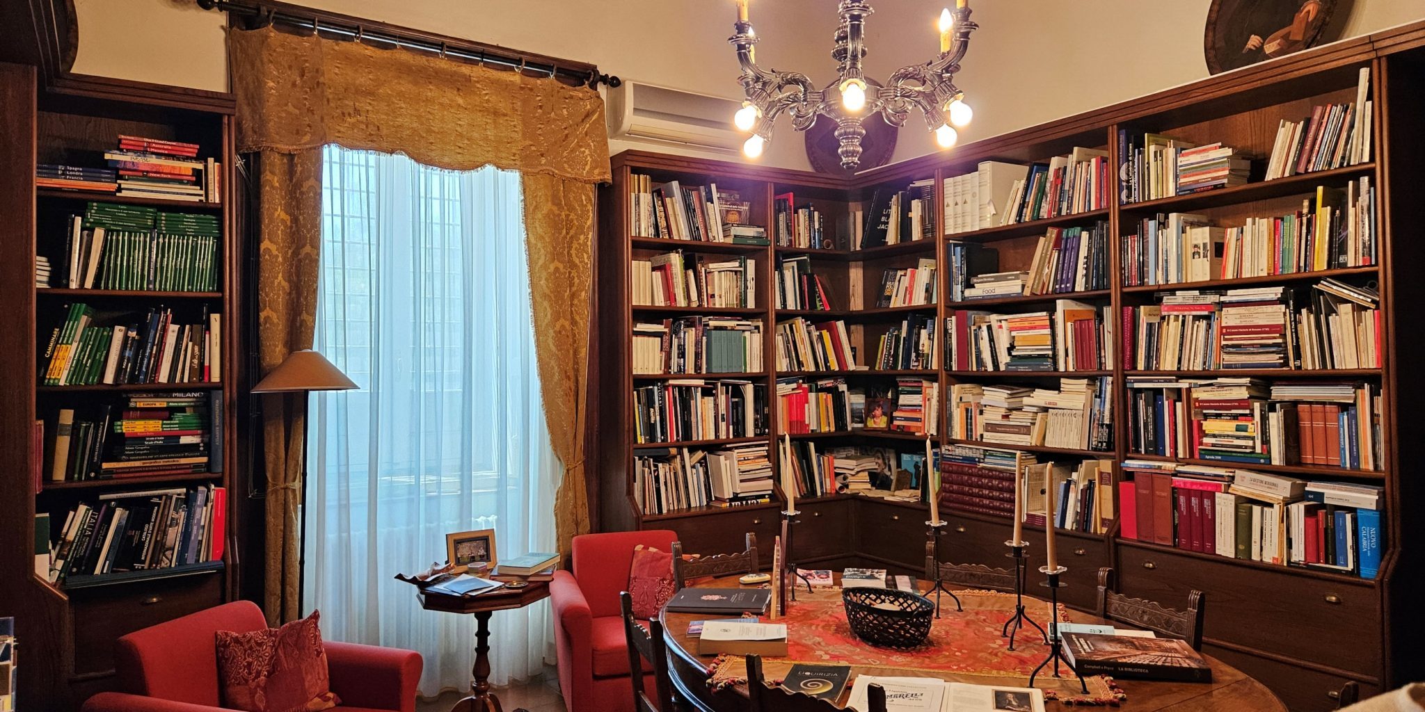 Infine, abbiamo appena restaurato un grande ambiente indipendente al piano terra, prospiciente l’orangerie, dove stiamo dando una collocazione adeguata alla biblioteca di mio marito, professore emerito di Storia del diritto romano all’Università Federico Il di Napoli, all’Università Lateranense di Roma e alla Luiss.