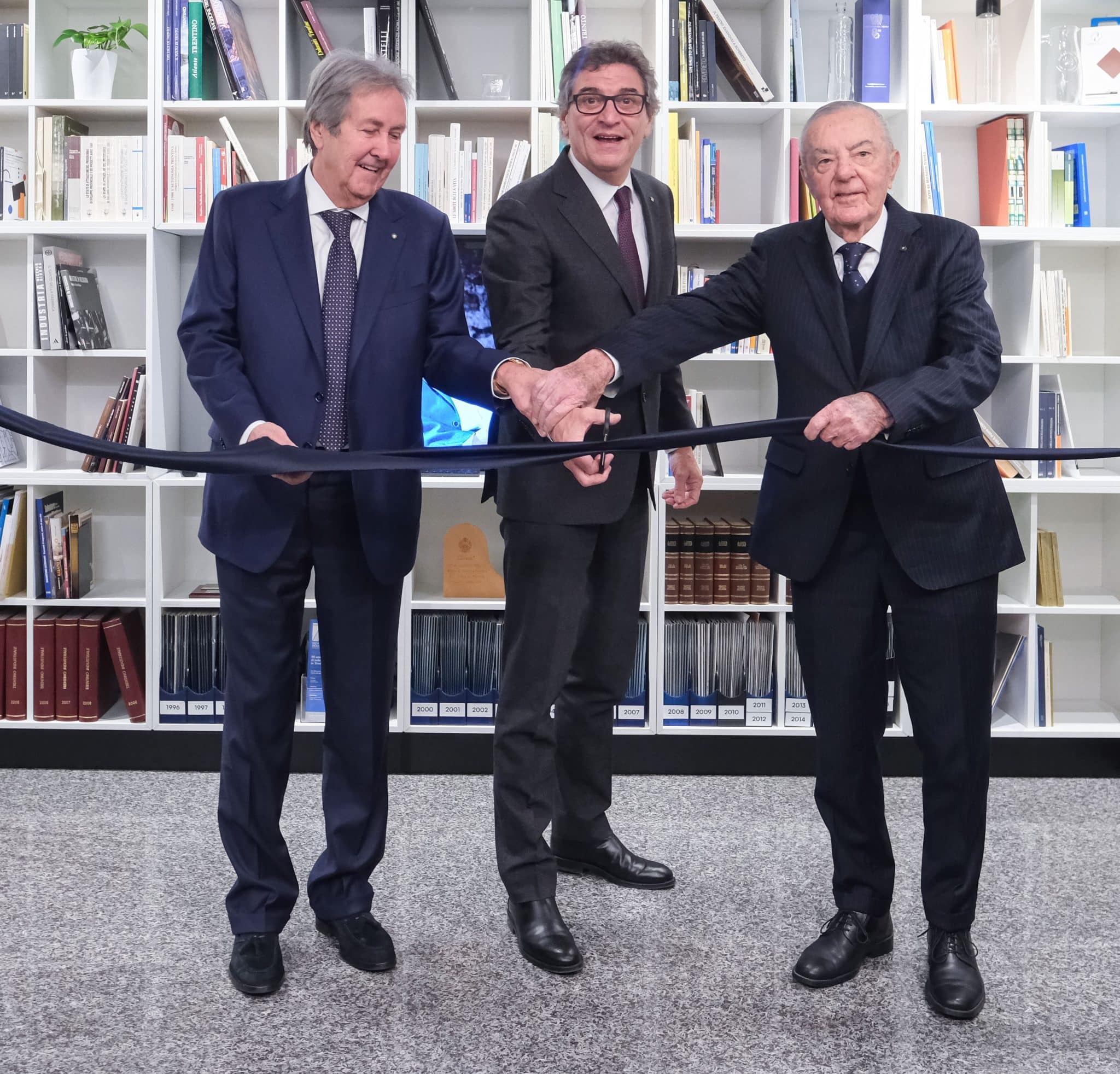 Inaugurata in occasione dell’ultima seduta dell’anno del Consiglio Generale dal presidente Lorenzo Delladio e dai past president Enrico Zobele e Mario Marangoni (assieme a lui nella foto), “Biblioteca d’impresa” ospita anche una mediateca che raccoglie le testimonianze orali – con protagonisti gli attori della governance locale e le parti sociali del territorio – raccolte nel mondo economico e produttivo trentino.
